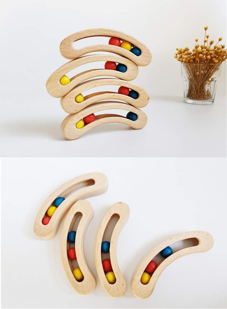 It’s uncolored and unvarnished, only a bit of linseed oil has been applied, so it’s safe to put in baby’s mouth.